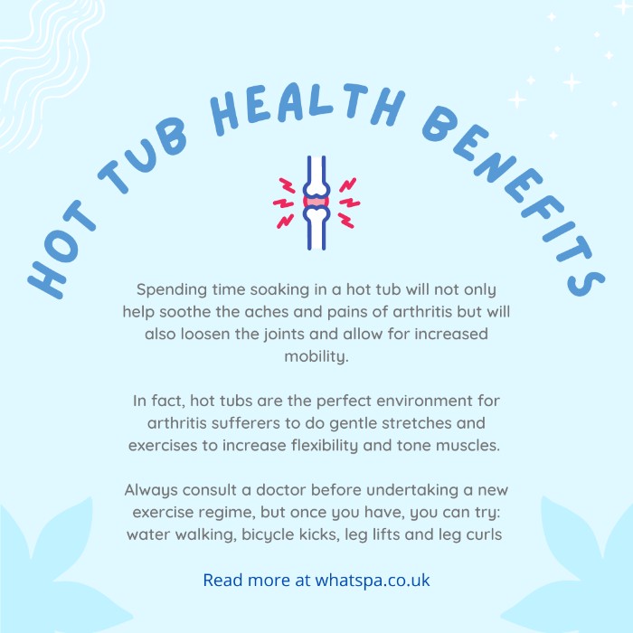 But in a hot tub, your body weight is reduced by about 90 per cent by the buoyancy of the water, making you feel weightless. This helps relieve pressure on your whole body and alleviate joint stiffness, making it the perfect place for those that suffer from arthritis to perform some gentle stretches.