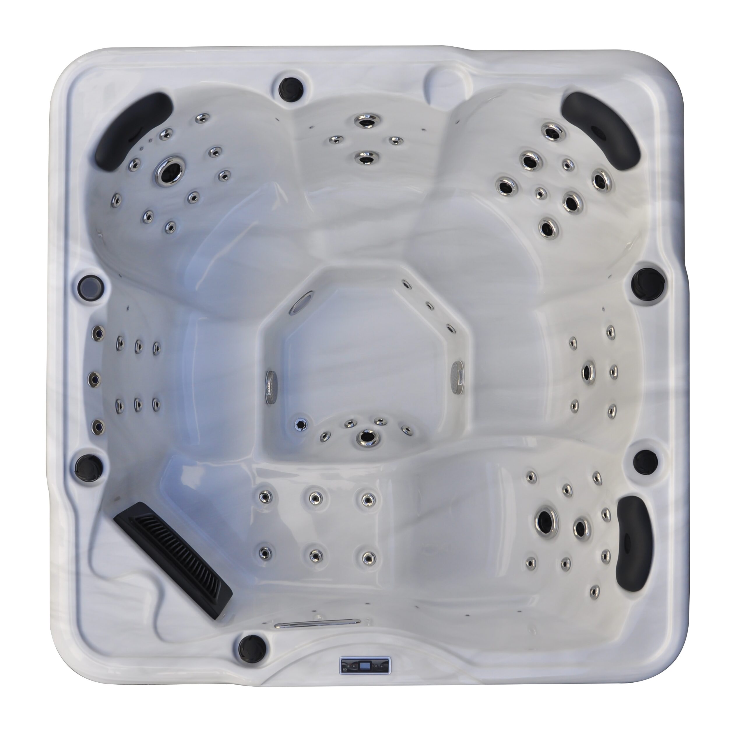 • Size and Layout: Ensure the hot tub comfortably accommodates six people, with ample space for each person. Consider the layout of the seats and whether they offer varied depths and positions for different heights and preferences.