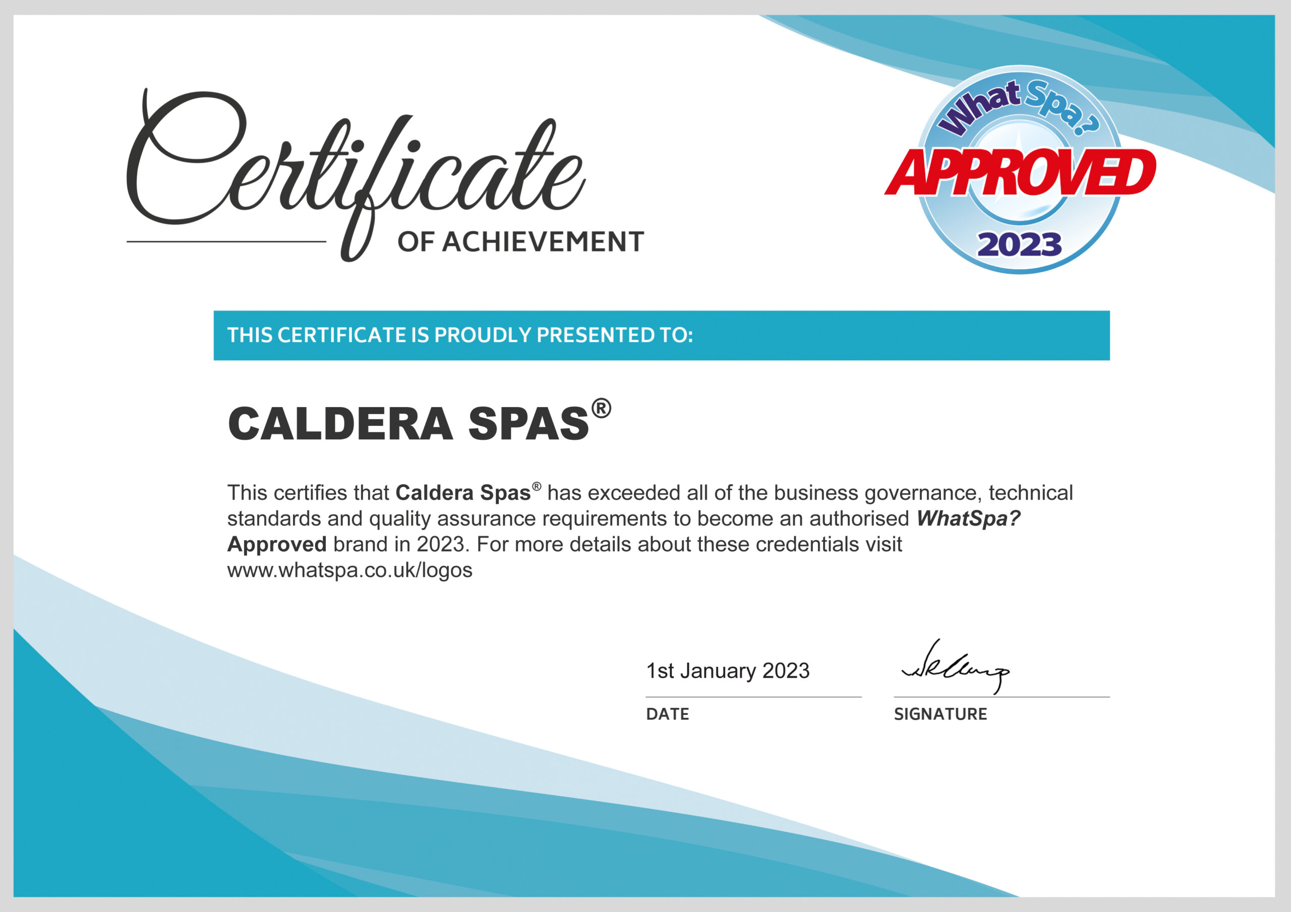 Caldera Spas is a WhatSpa? Approved manufacturer. See our current certificate of approval here.