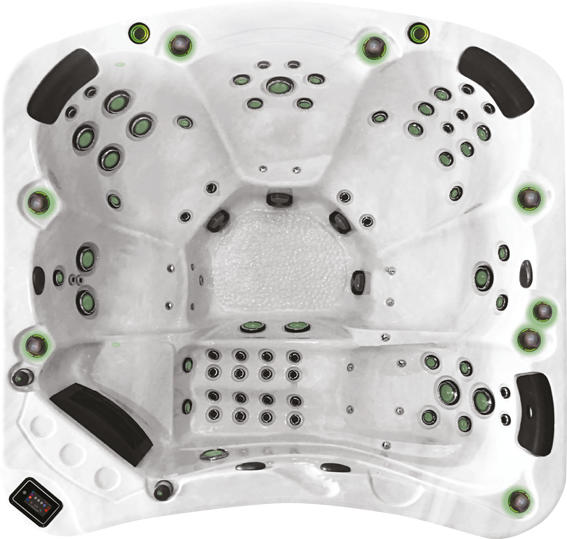 With a name like ‘Be Well’ you would expect this Canadian company to deliver a product range with a hydrotherapeutic performance worthy of the very best; luckily the Vancouver delivers in spades with a neck-to-toe lounge seat massage to die for! Besides feeling great, it looks awesome, featuring a unique scalloped front and rear design unlike no other spa, plus an array of lighting that rivals all-comers after dusk falls. All the latest technology comes as standard, including a WiFi touch screen control panel, Bluetooth® stereo system with subwoofer, and back-lit jets and topside controllers. A true show-stopper!