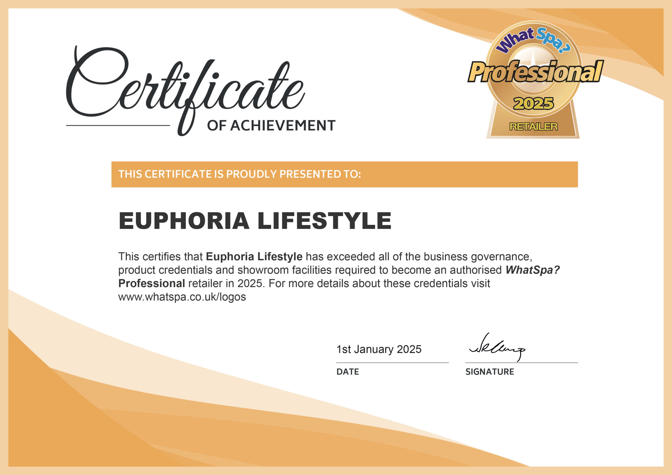 Euphoria Lifestyle Ltd is a WhatSpa? Professional retailer. See our current certificate of approval here.