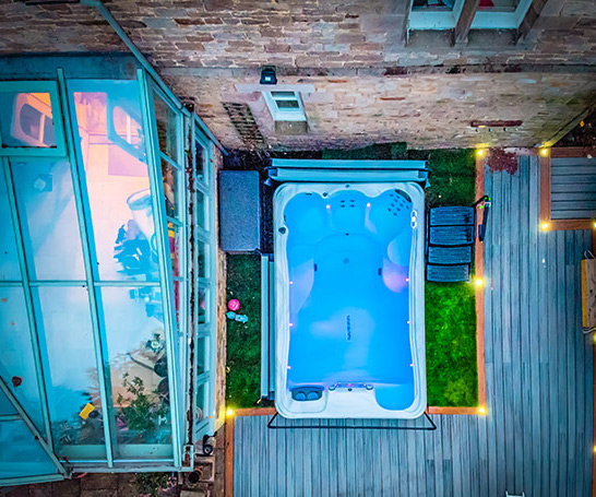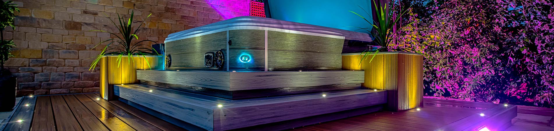 Decking is another great location for a hot tub. Just be aware that the cross-members supporting a deck you’re planning on placing a hot tub on should be 4” x 2” and no more than 18” apart. A good hot tub dealer will check that for you during a site survey to make sure your decking is a stable enough foundation for the home spa you have in mind.