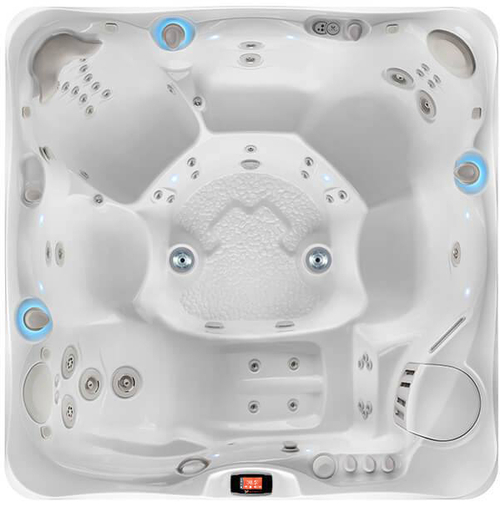 The Florence seats six in an all-seater configuration and delivers hydrotherapy via 46 jets powered by two pumps, alongside a 24-hour circulation pump for continuous water movement. It holds 1,362 litres and its shell measures 213 × 213 × 91 cm, offering a generous interior volume for multiple users. Seating depth is classified as “Best for Families,” and the spa is fully foam insulated. Electrical supply required is 41 Amp, and the model carries a five-year parts warranty.